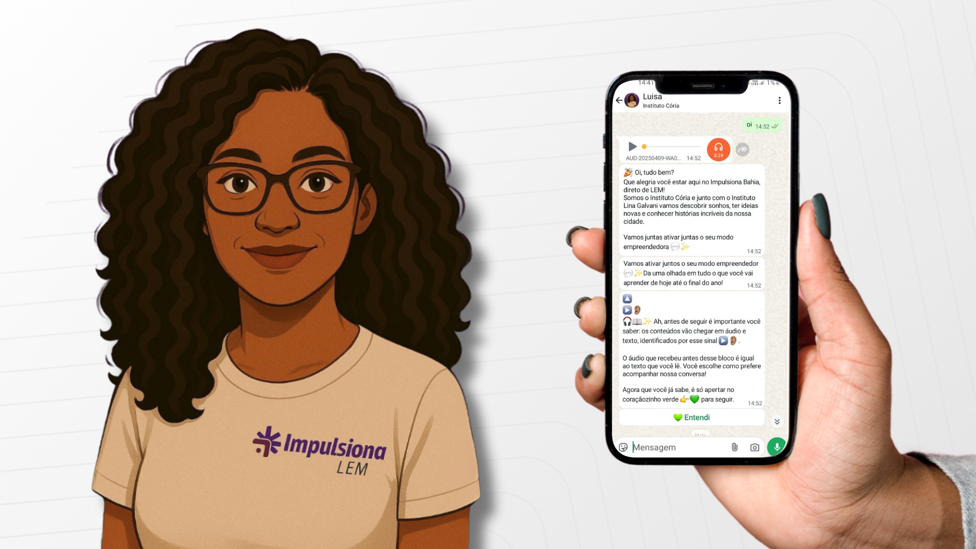 Você será inserida na nossa base de envios de conteúdos via WhatsApp para te inspirar e ajudar, de um jeito simples, no universo do empreendedorismo!